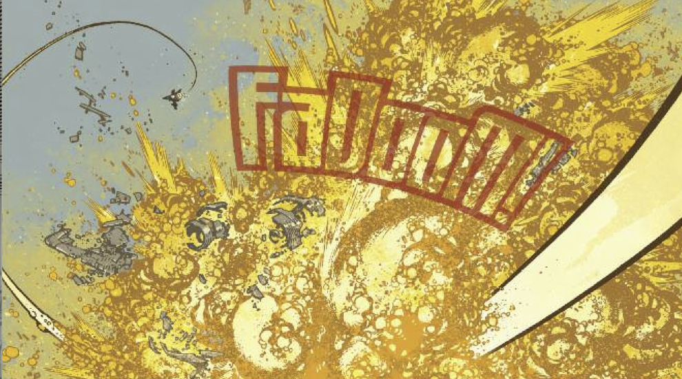 And by explosive, I’m not simply talking about all things coming to a head after all the tension that has been built up over five issues is released in a singular climactic burst.  I mean, literally: there are a lot of explosions.  A lot.  It’s clear–well, as clear as it can be for all the smoke and debris: the creative team–the Wild Blue myth masters–comprised of Mike Raicht (story/writer), Zach Howard (story/artist), Austin Harrison (story) and Nelson Daniel (colors) decided to go out with a FaDoom!